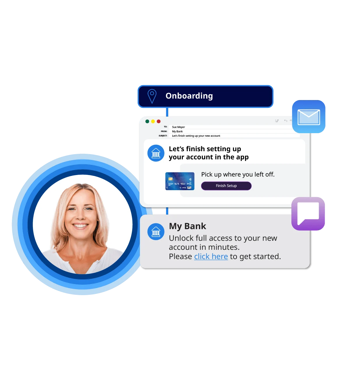 Account opening and onboarding involve more steps, more verification requirements and more drop-off risk than almost any other banking journey. Clear, timely communications that guide customers through each step, confirm what is needed and set expectations for what comes next reduce abandonment, accelerate activation and start the relationship on the right foot.