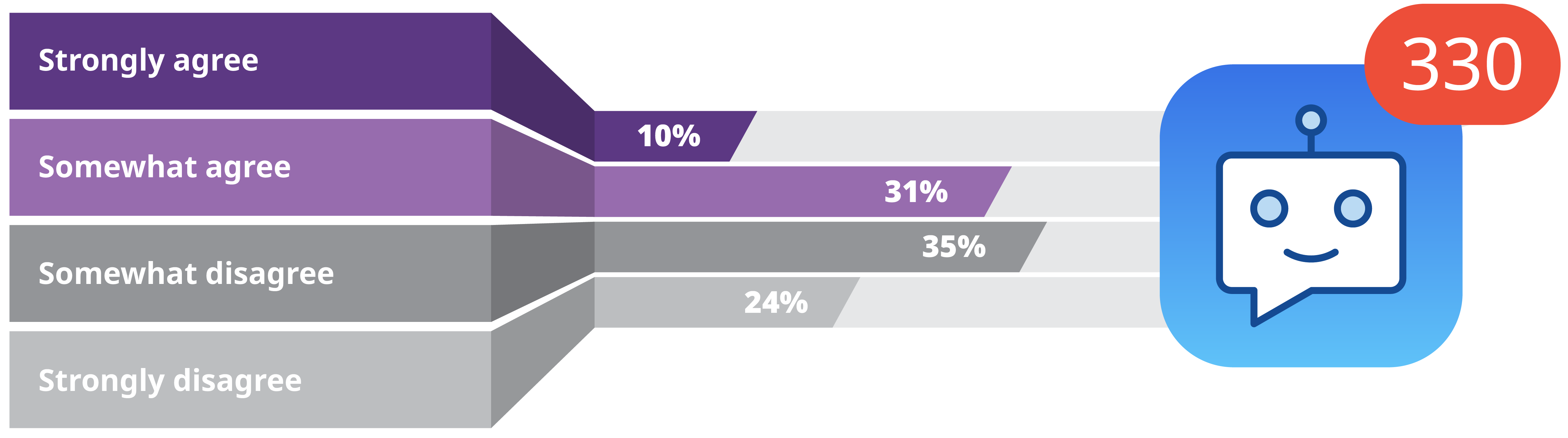 Only 41% of consumers agree AI agents or chatbots are more effective than human agents at resolving issues.